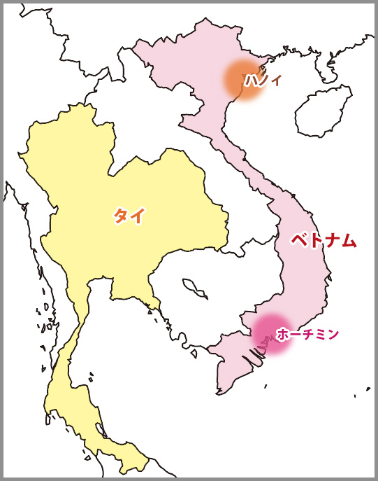 - ベトナム、タイは政治的にも安定していて、労働力も豊富。長年の安定供給実績がありご安心頂けます。